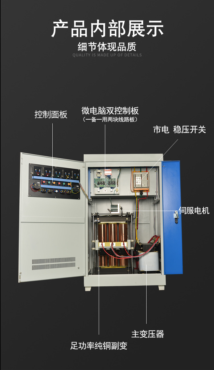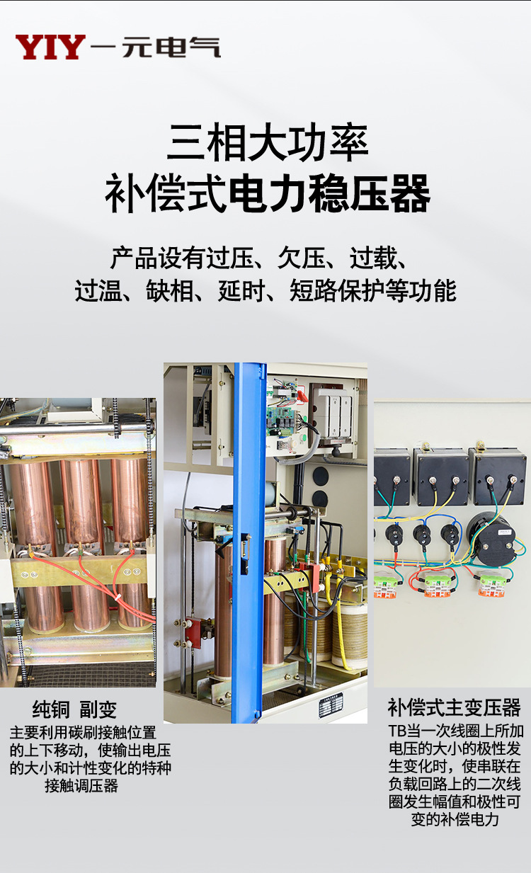SBW系列三相全自動補償式電力穩(wěn)壓器,具有容量大、效率高、精度高、穩(wěn)壓范圍寬、保護功能強、無波形畸變、電壓調(diào)節(jié)平穩(wěn)、運行可靠及使用維護簡單等優(yōu)點。適合負載廣泛,能承受瞬時過載,可長期持續(xù)工作,設(shè)有過壓、過流、缺相、相序保護及機械故障自動保護。該穩(wěn)壓器由補償模塊、AD采樣模塊、單片機控制模塊、升壓/降壓等操作模塊、系統(tǒng)供電模塊及顯示模塊等幾大模塊組成